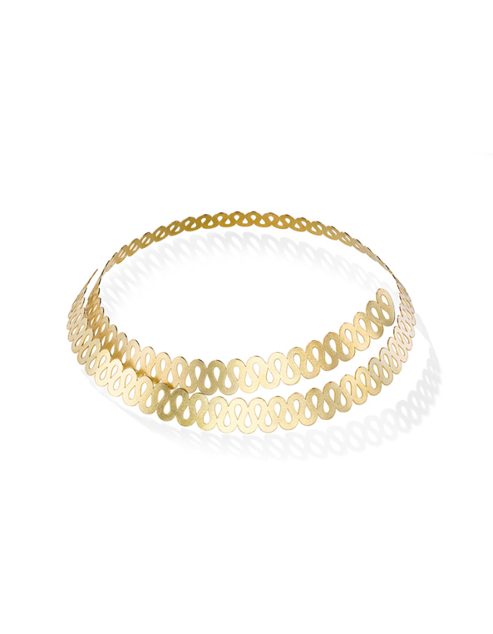 Ispirato alla raffinata eleganza delle antiche gorgiere, il girocollo "Isabella" reinterpreta le pieghe sinuose di questo iconico accessorio, simbolo di regalità e mistero.