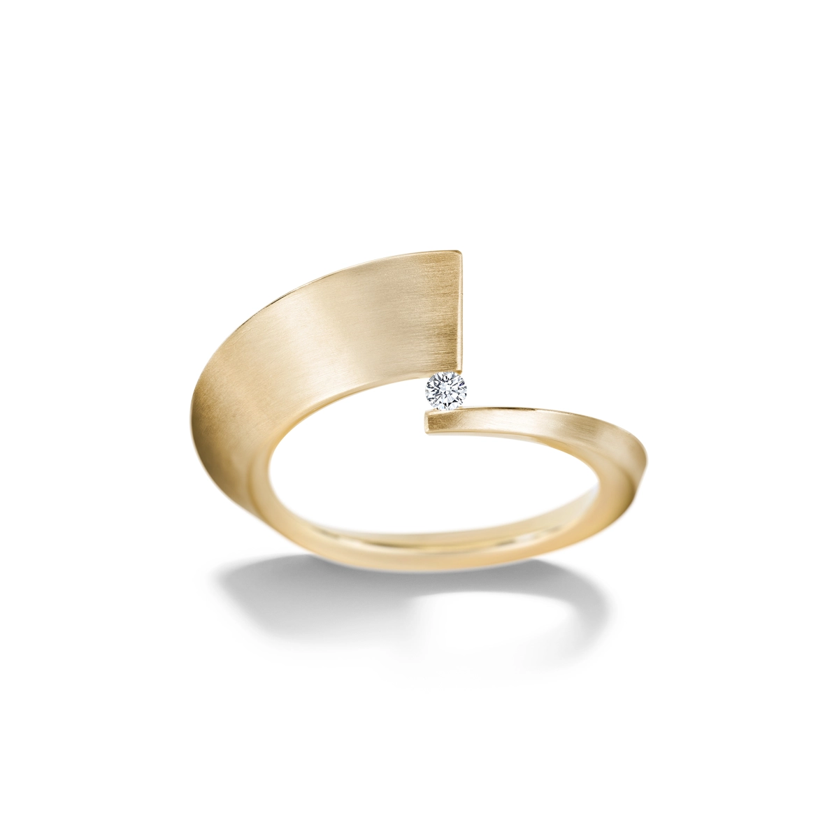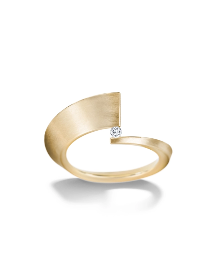 Il diamante, disposto con delicatezza, esalta la luminosità del gioiello, creando un equilibrio perfetto tra forza e raffinatezza. Ogni dettaglio rappresenta una connessione armoniosa tra forma e luce, riflettendo lo stile senza tempo di chi lo porta.
